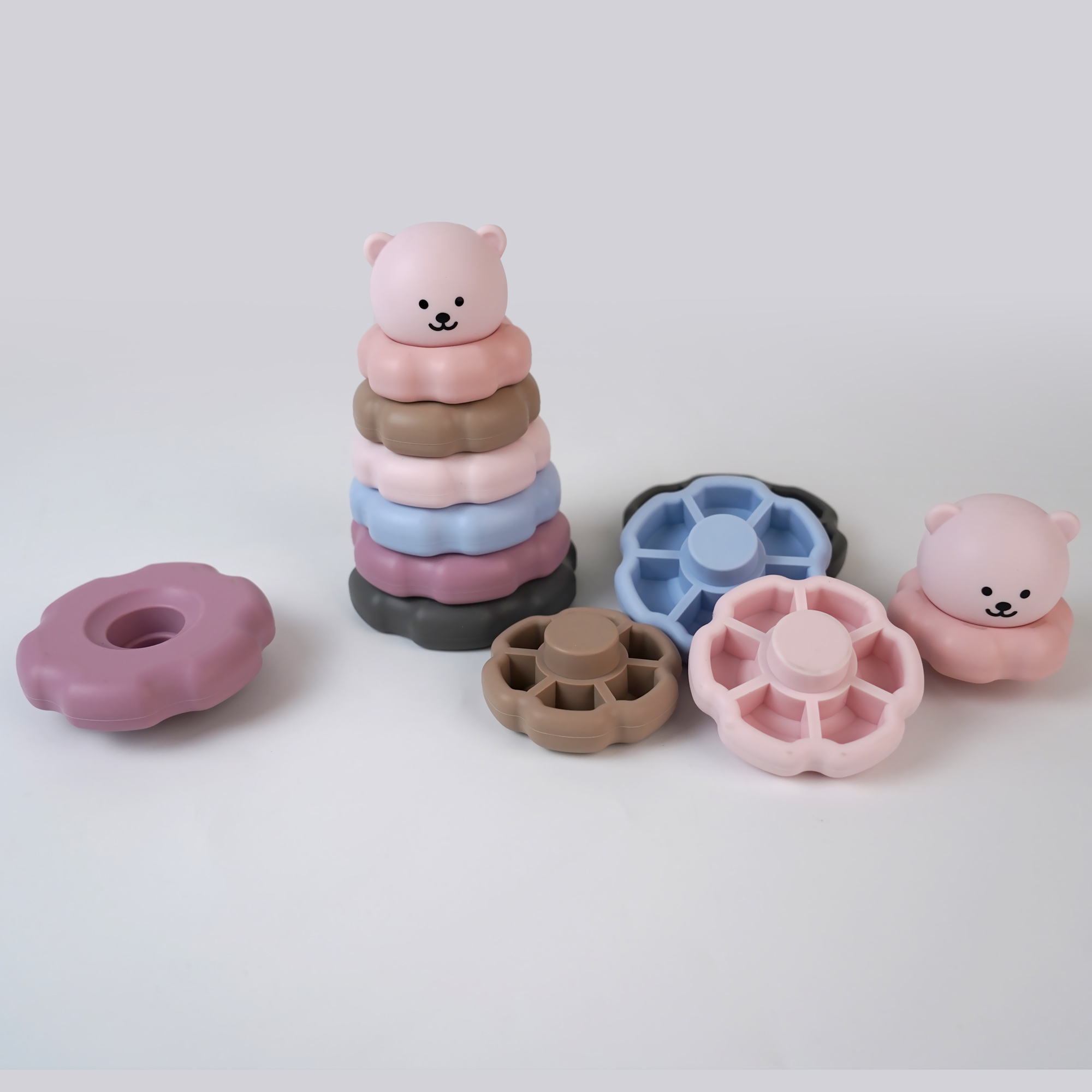3-6歲寶寶益智硅膠疊疊樂六瓣花早教益智玩具硅膠積木